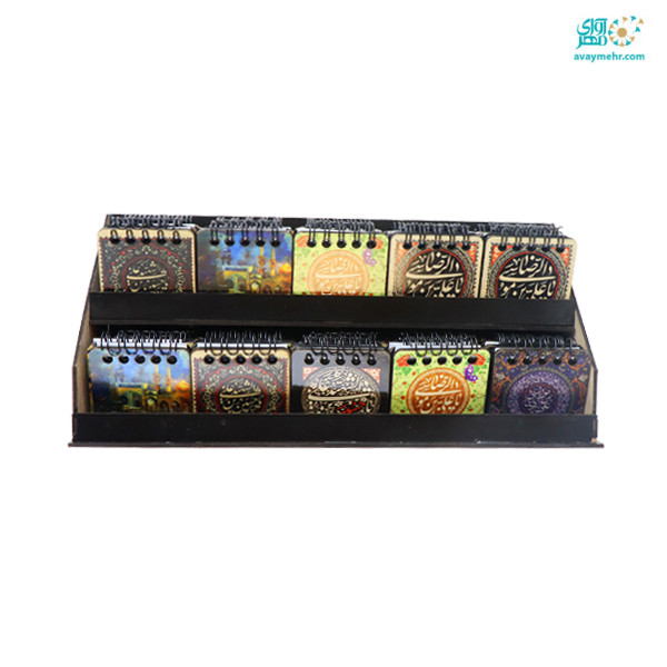 - خانه - محصولات کاغذی - یادداشت - دفتر یادداشت ۵×۵ فنری جلد چوبی مذهبی P۱۰۲ دکمه