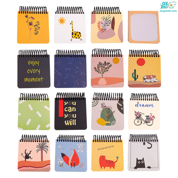 یادداشت ۱۰۰ برگ ۱۰×۱۰ جلد سخت فنر از بالا طرح فانتزی